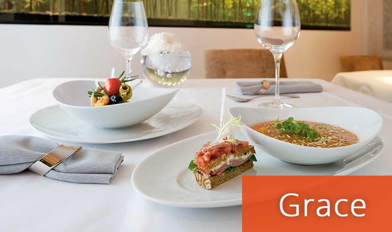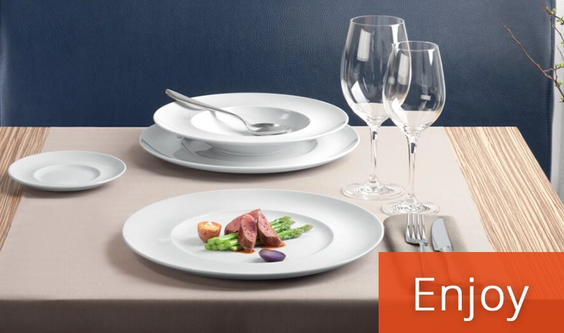 Lassen Sie bei der Speisenpräsentation ihrer Kreativität und ihrem Geschmack freien Lauf. Nutzen Sie für ihr gastronomisches Konzept die vielen Vorteile von Hotelporzellan wie Kantenschlagfestigkeit, hohe Schnittfestigkeit und hygienische Oberflächen .Beim Hotelporzellan verbinden sich Design und Funktion auf wunderbare Weise.