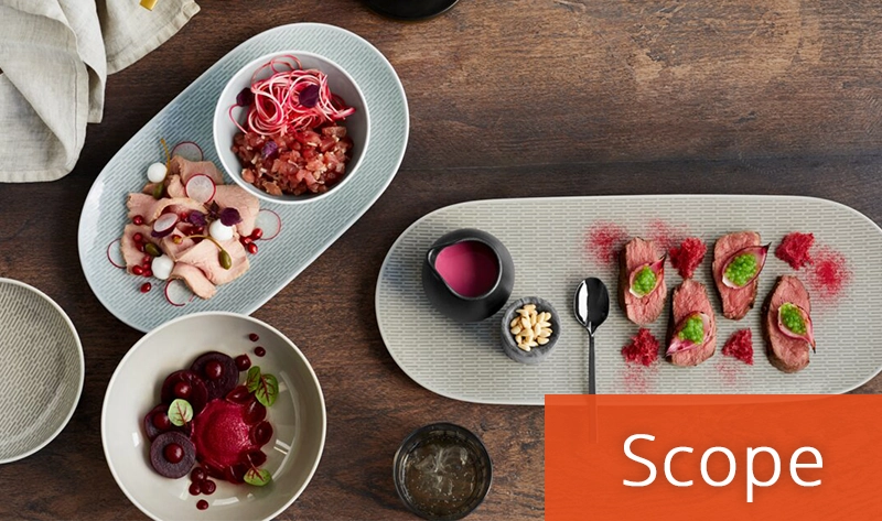 Schönwald: Als Spezialist für zeitgemäßes Design verbindet Schönwald Ästhetik mit extremer Strapazierfähigkeit. Die Kollektionen sind gezielt auf die Anforderungen moderner Food-Trends zugeschnitten.