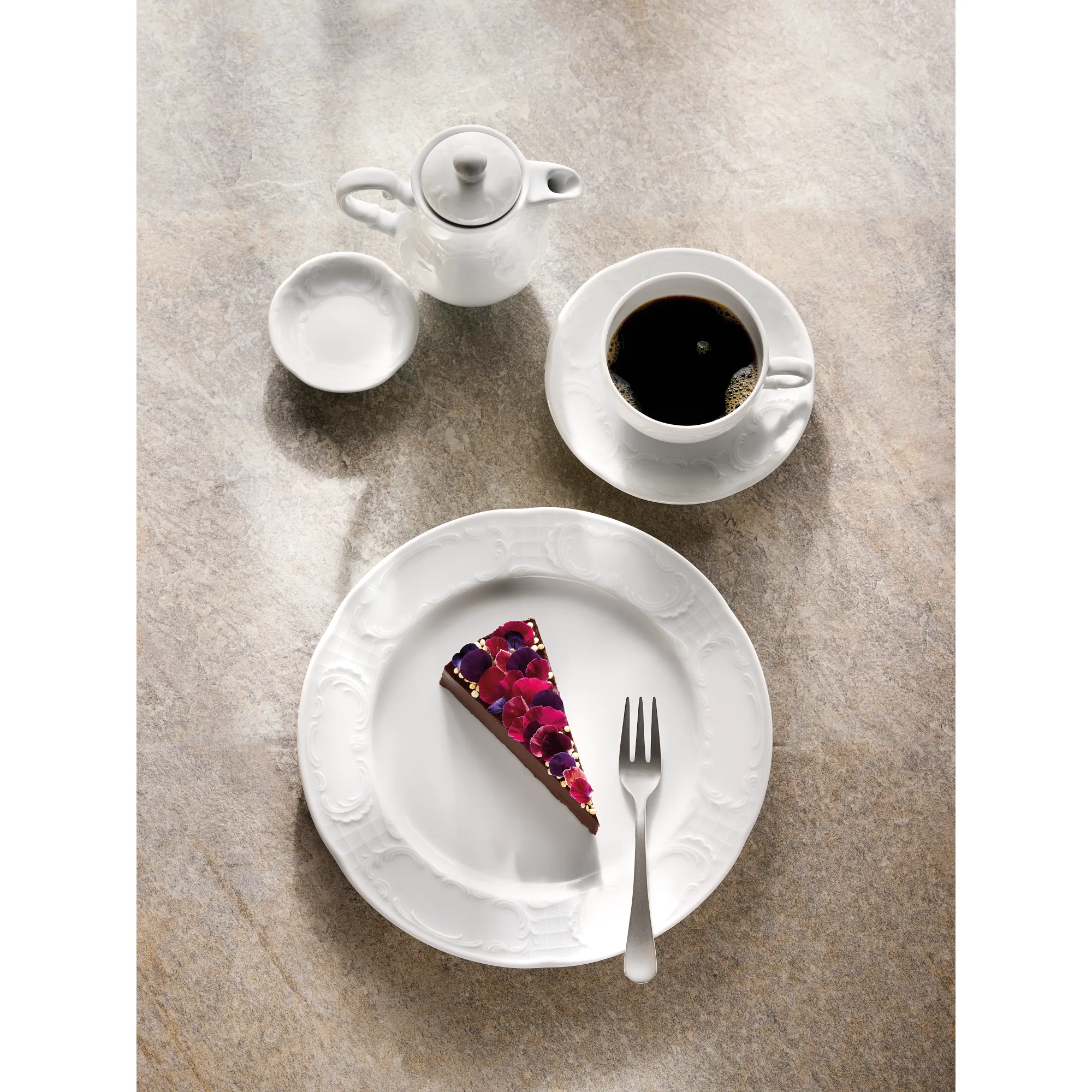 Die klare weiße Glasur unterstreicht den klassisch-barocken Stil, ohne aufdringlich zu wirken, und setzt Getränke stilvoll in Szene. Die Serie Mozart eignet sich ideal für traditionelle Tischkonzepte, gehobene Restaurants und Hotels, lässt sich aber ebenso flexibel mit modernen Elementen kombinieren. Qualität und Design – Made in Germany.