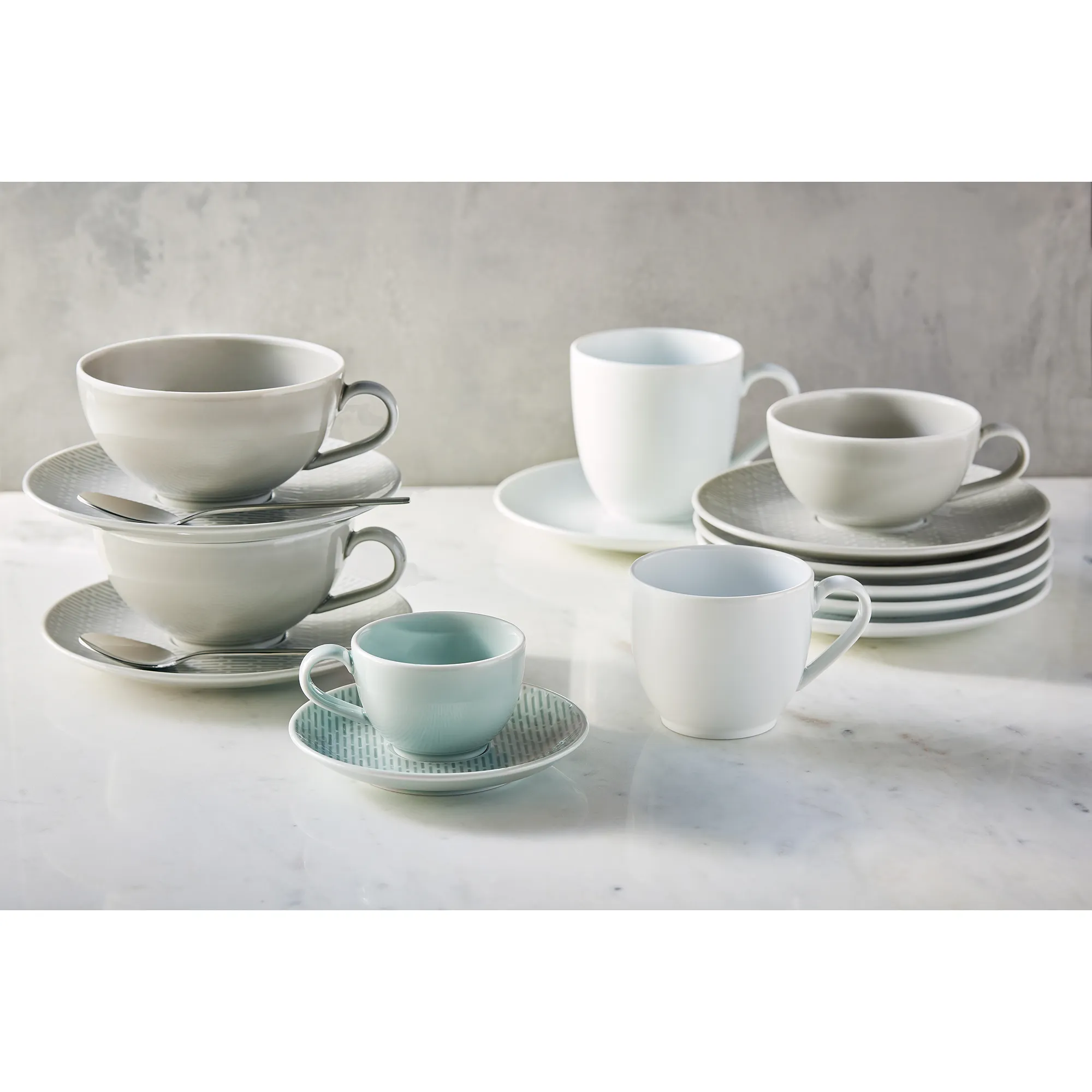 Die Bauscher Porzellan Serie Scope ist eine stilvolle und vielseitige Kollektion, die durch ihre einzigartige Gestaltung besticht. Das Geschirr zeichnet sich durch eine elegante Stäbchenstruktur aus, die dem Porzellan eine besondere Haptik und Optik verleiht. Es ist in zwei faszinierenden Glasurfarben erhältlich: Glow Gray und Sea oder in weiß mit Struktur, die jeweils eine moderne und gleichzeitig zeitlose Atmosphäre schaffen. Die Kombination aus den strukturierten Geschirrteilen und den dezenten Glasurfarben ermöglicht vielfältige Einsatzmöglichkeiten – egal ob für den Alltag, besondere Anlässe oder die professionelle Gastronomie.